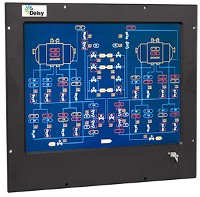 Rack mount monitor housed in powder coated aircraft grade aluminum bezel enclosure with 21.3" LCD color display featuring On Screen Display (OSD). Customizable to include a touchscreen and safety glass, as well as optional accessories including KVM extender to keep PC safe off the plan floor.